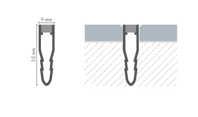 PVC tile profile, dilatation arrow 8.5x35mm L= 2.50m Medium Grey RAL7046 matt