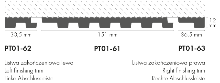 PS strip wall panel THALIA01 151x12mm \ Creativa by Cezar L= 2.80m